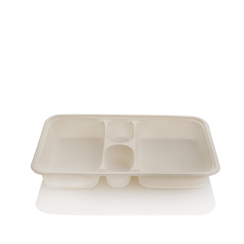 ظرف یکبار مصرف گیاهی ۴ خونه مرغی با درب (بسته ۵۰ تایی)