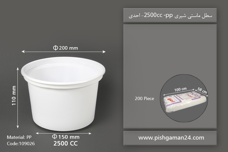 سطل ماست یکبار مصرف سایز ۲۵۰۰ سی سی(احدی)(بسته ۲۰۰ عدد)