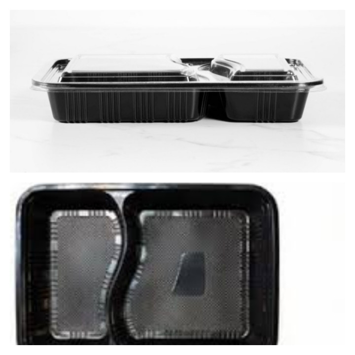 ظرف مشکی ماکروویوی یکبار مصرف دو خانه بزرگ (مهرپارسا) (بسته ۵۰تایی)
