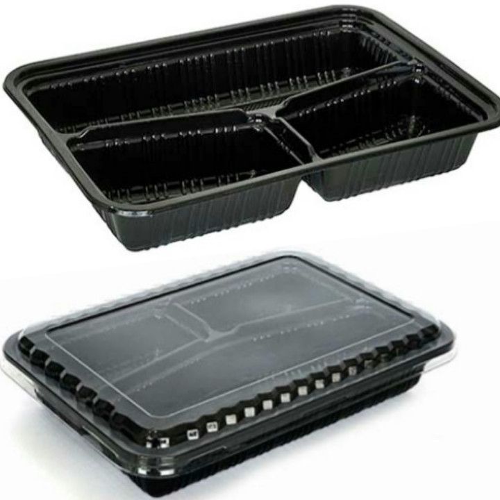 ظرف ماکروویوی یکبار مصرف مشکی ۳ خونه با درب (کارتن ۱۰۰ تایی)