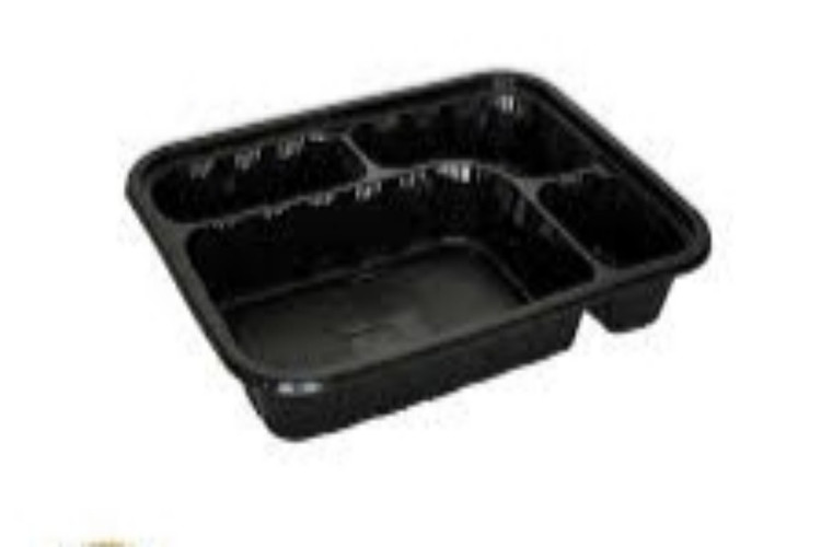 ظرف بسته بندی مشکی یکبار مصرف ۴ خانه با درب (بسته ۱۰۰ تایی)