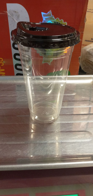 لیوان ۵۰۰سی سی شیک یکبار مصرف با درب تخت مشکی (کارتن ۱۰۰۰ تایی)