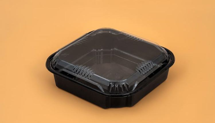 ظرف بسته بندی فانتزی مشکی یکبار مصرف نفیس مربع تک خانه با درب (کارتن 600تایی)